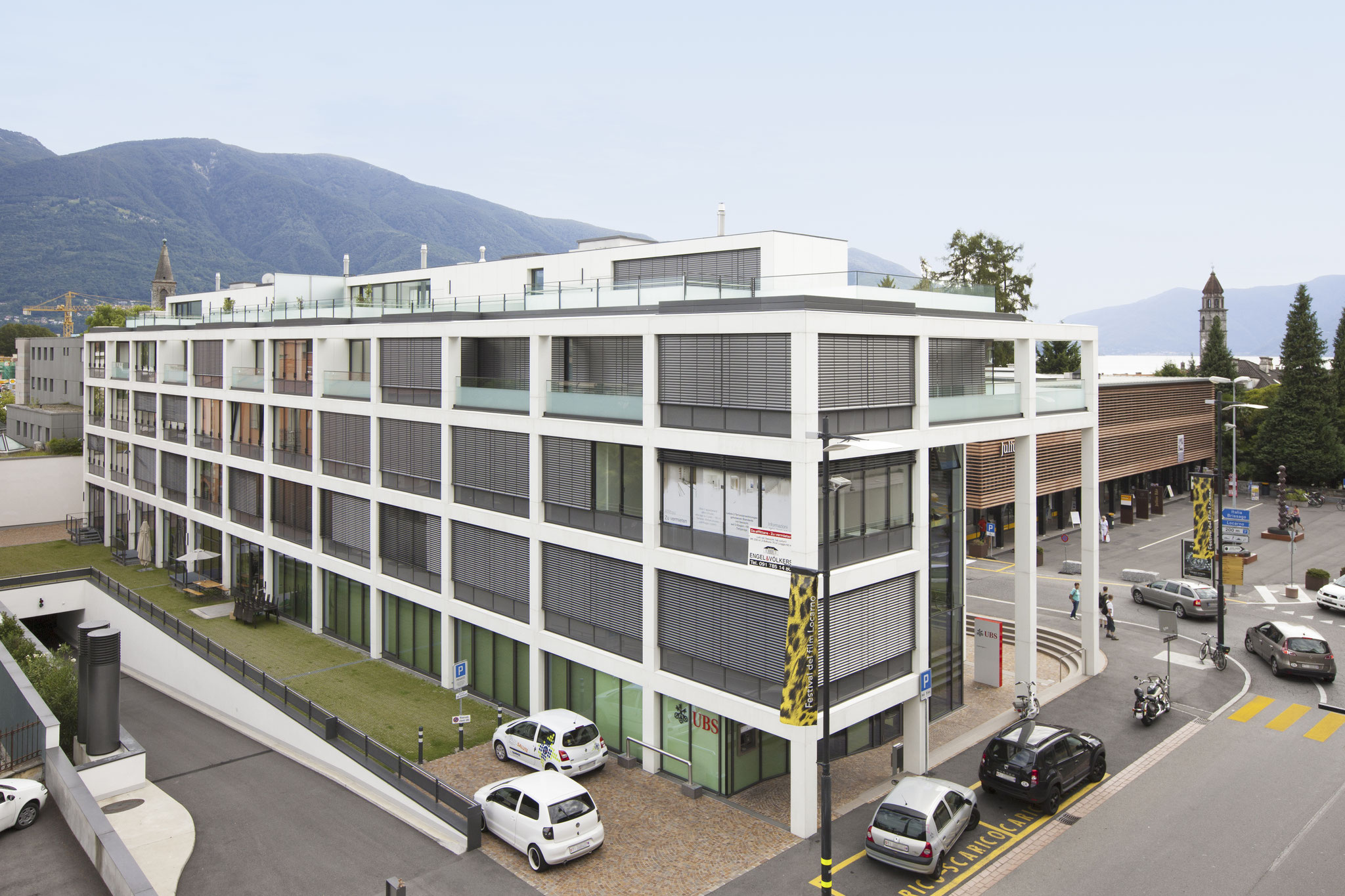 nello stabile della banca UBS, due minuti dal borgo e dal lago